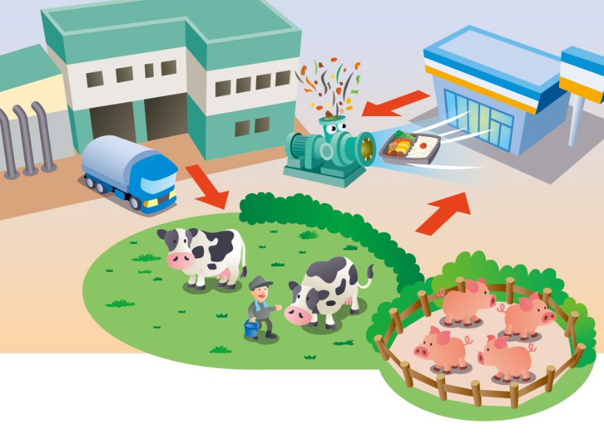 食品残渣は破砕して、 家畜の飼料に再利用。