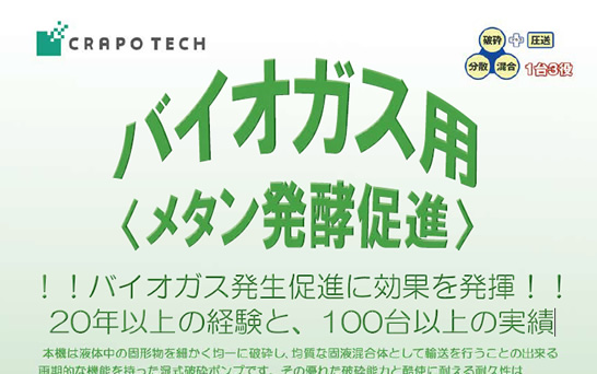 バイオガス用<メタン発酵促進>バイオガス発生促進に効果を発揮!!20年以上の経験と、100台以上の実績