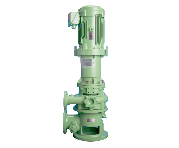 | 特徴 | 横型破砕ポンプと同様の破砕機構を持ち液体内の固形物等を強力に破砕、剪断、混合し同時に移送が行えます。また、設置面積は横型破砕ポンプの約半分であり、専用治具によりメンテナンスも容易になっております。 |